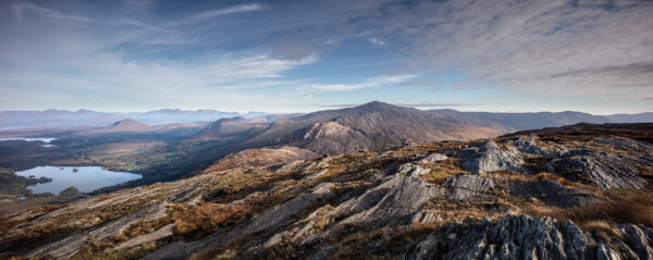 The majestic mountains of Beara from high above the Healy Pass with the ranges of the Dunkerrons & McGillycuddys Reeks in the distance.