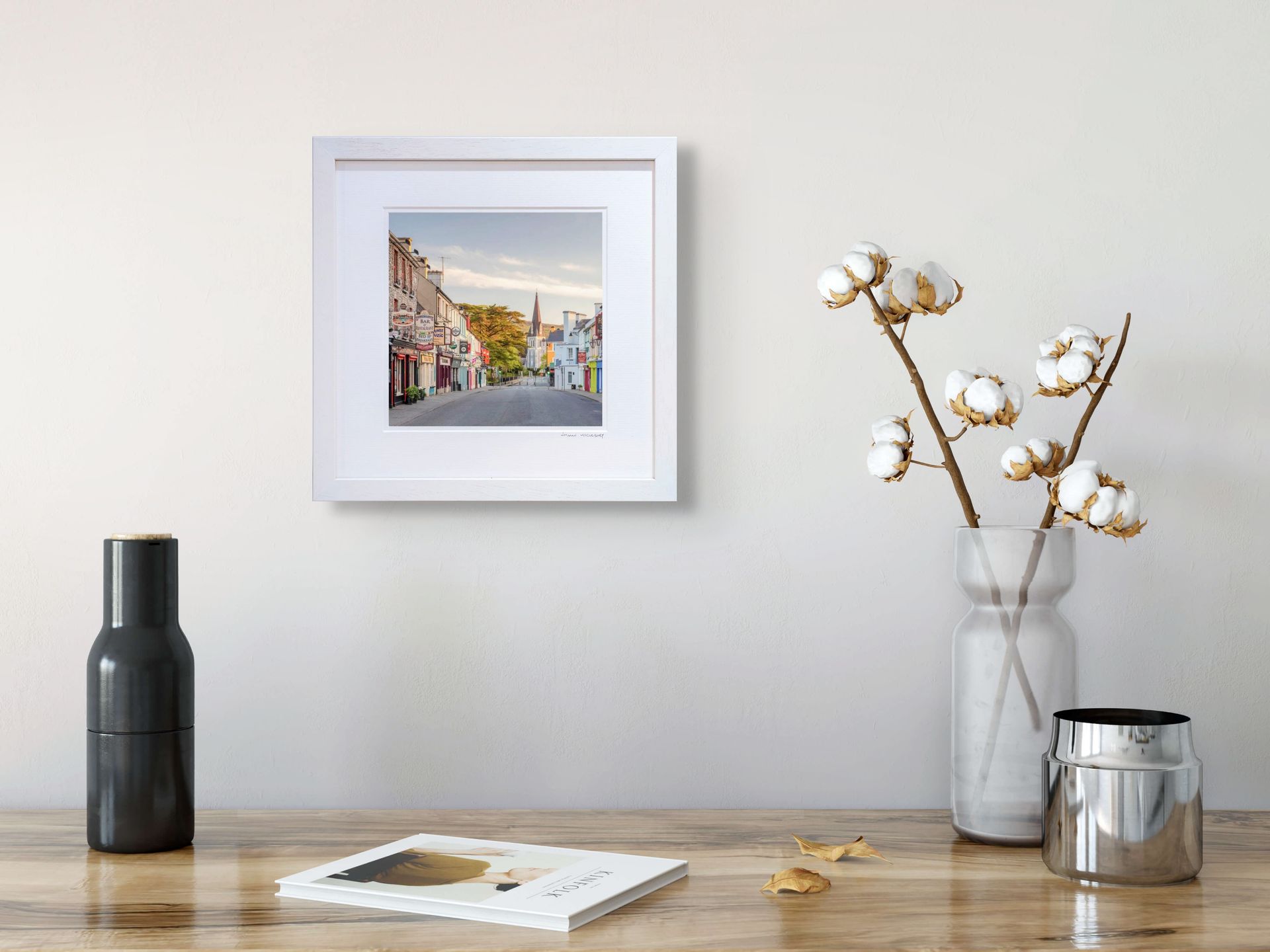 Our framed prints come in two styles. Â Our traditional box frame in off-white features a lovely deep wooden bevel mount giving a real sense of depth to the piece and we use anti-reflective UV 70% glass on all pieces.